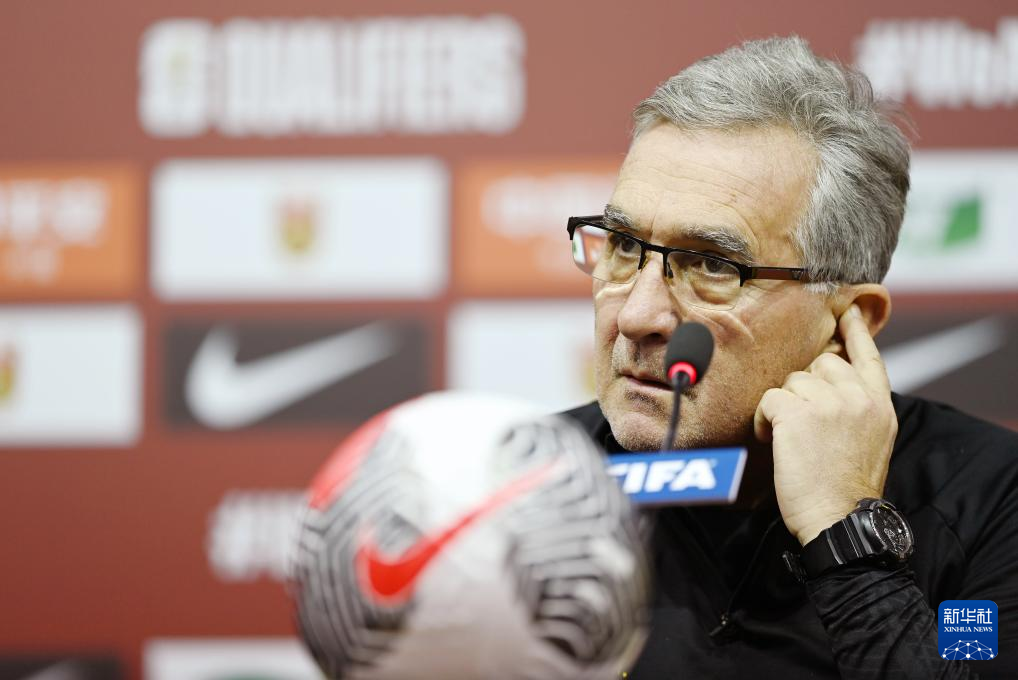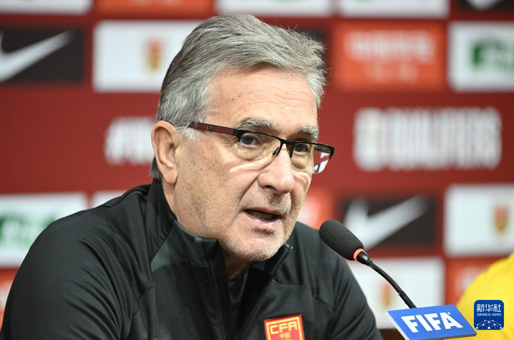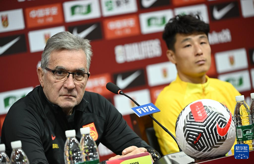3月25日,中国队主教练伊万科维奇在发布会上。新华社记者 赵子硕 摄