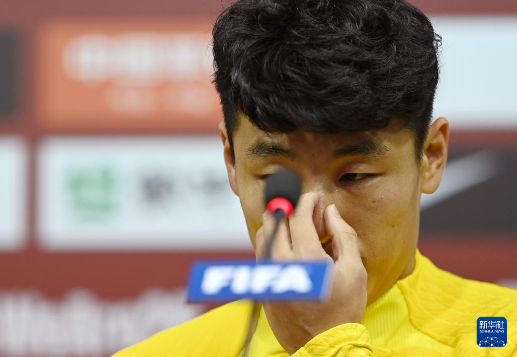 3月25日,中国队球员武磊在发布会上。新华社记者 赵子硕 摄