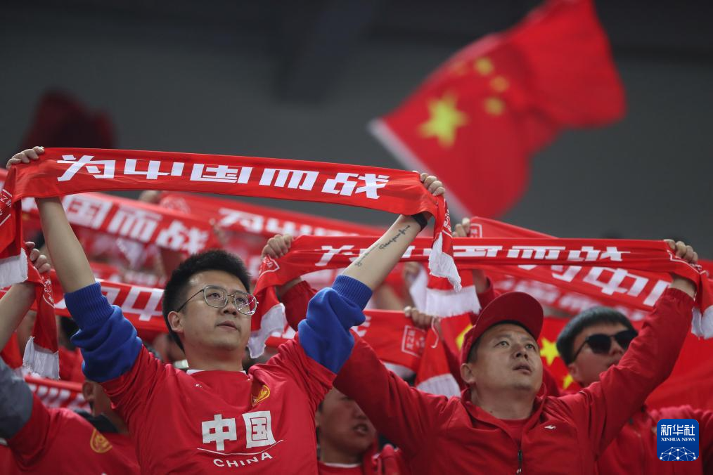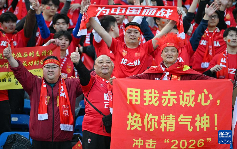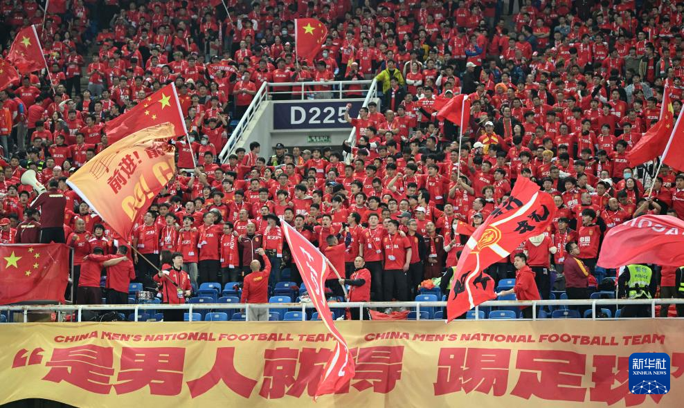 3月26日,中国队球迷在比赛前为球队加油。新华社记者 贾浩成 摄
