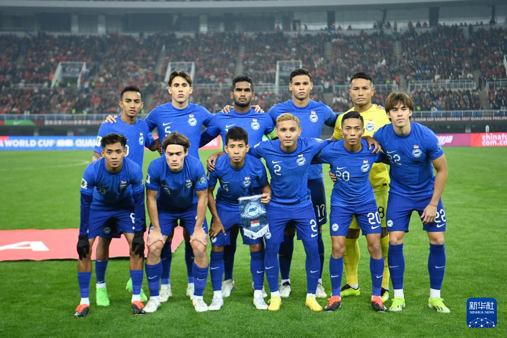 3月26日,新加坡队首发球员在比赛前合影。新华社记者 赵子硕 摄