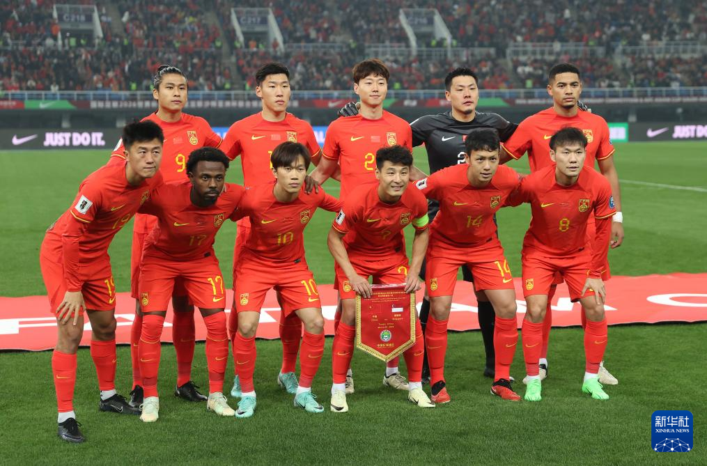 3月26日,中国队首发球员在比赛前合影。新华社记者 贾浩成 摄