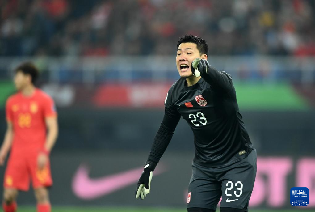 3月26日,中国队守门员王大雷在比赛中。新华社记者 赵子硕 摄