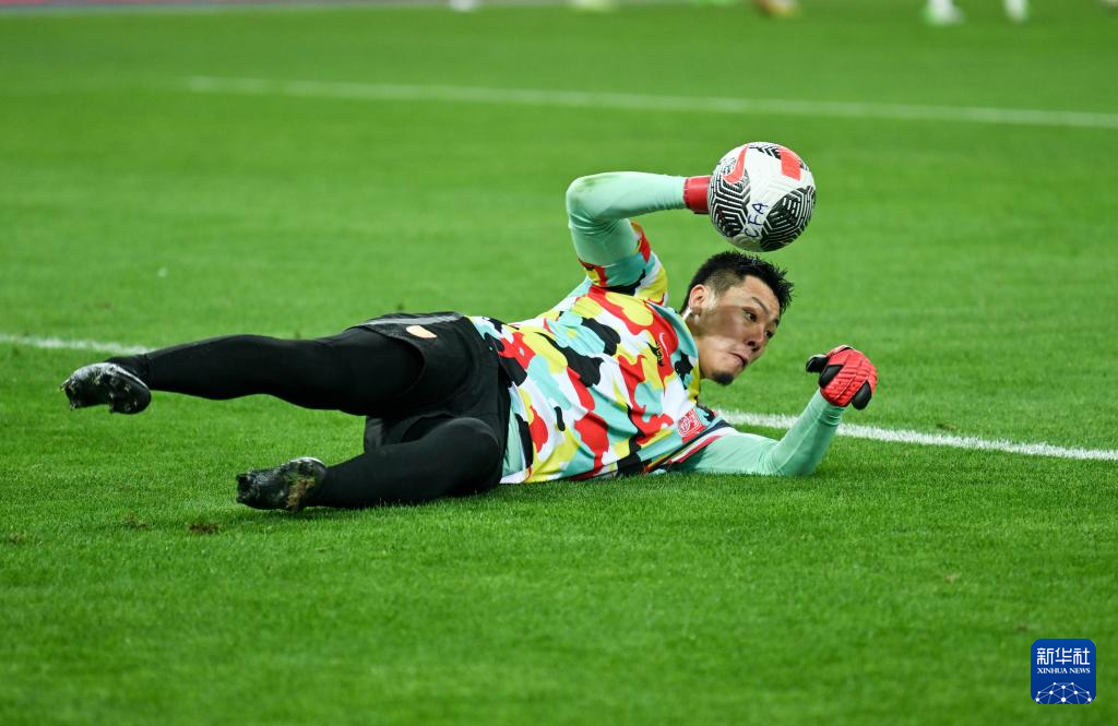 3月26日,中国队本场比赛首发守门员王大雷在赛前热身。新华社记者 孙凡越 摄