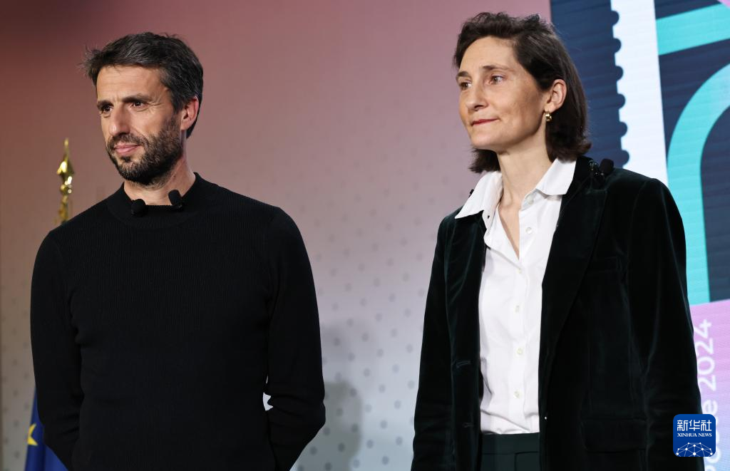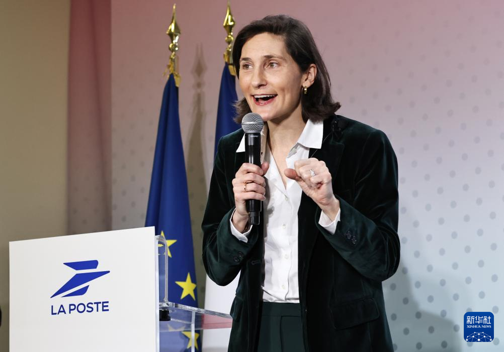 3月26日,法国体育部长卡斯特拉出席巴黎奥运会及残奥会官方邮票发布会。新华社记者 高静 摄