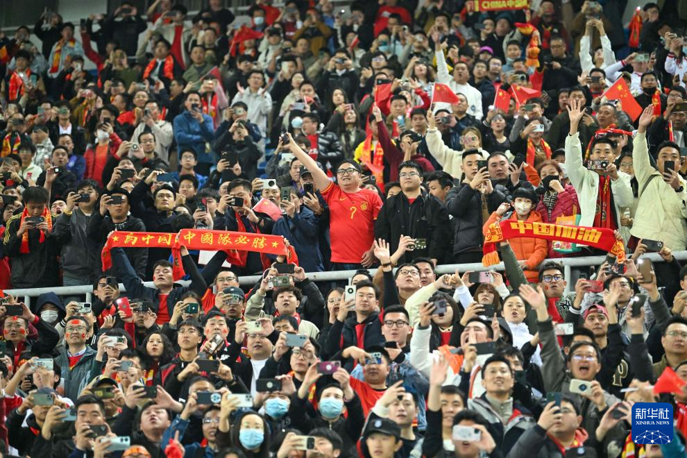 3月26日,中国队球迷赛后庆祝球队胜利。新华社记者 孙凡越 摄