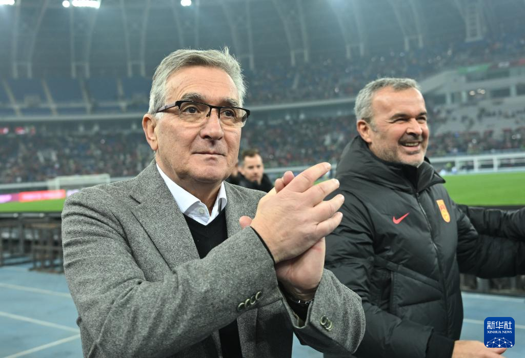 3月26日,中国队主教练伊万科维奇(左)在比赛后。新华社记者 孙凡越 摄