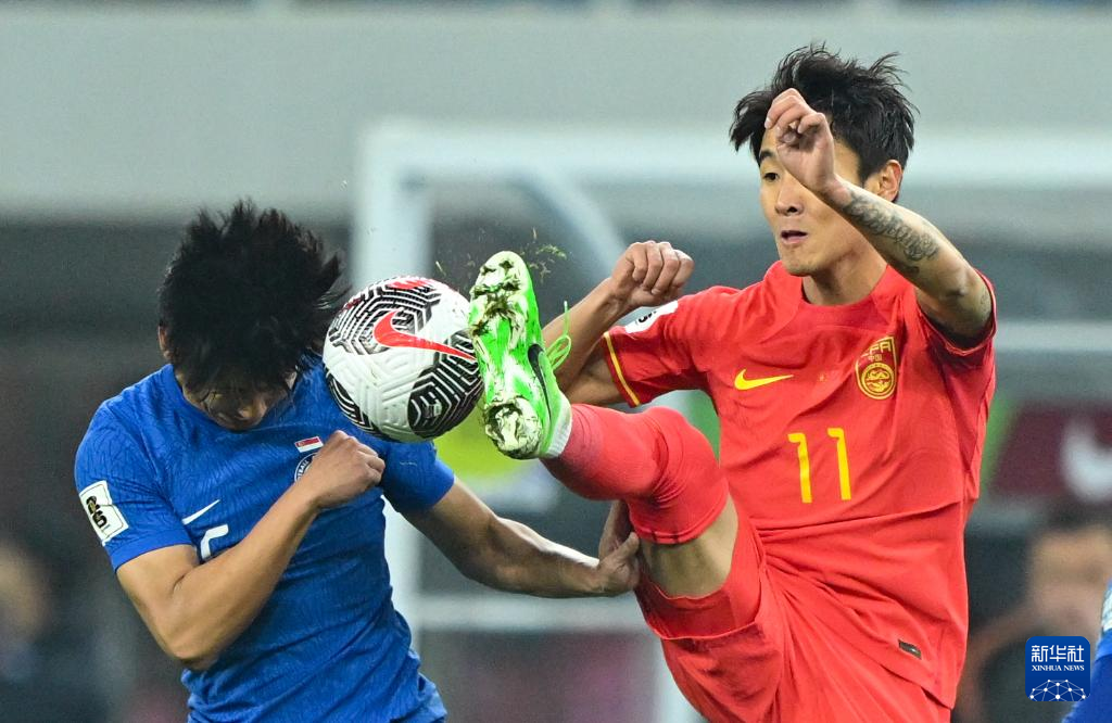 当日,在天津举行的2026年国际足联世界杯亚洲区预选赛36强赛C组比赛中,中国队主场4比1战胜新加坡队。