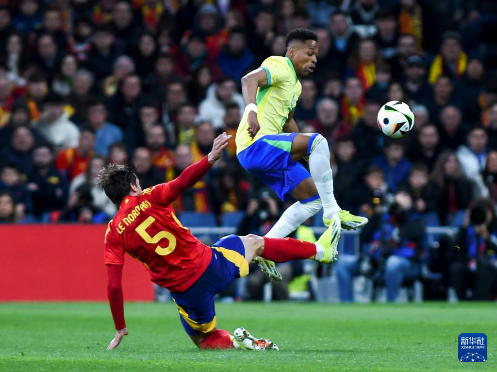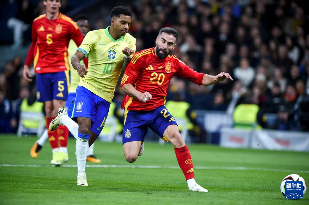 当日,在西班牙马德里举行的一场国际足球友谊赛中,西班牙队主场3比3战平巴西队。