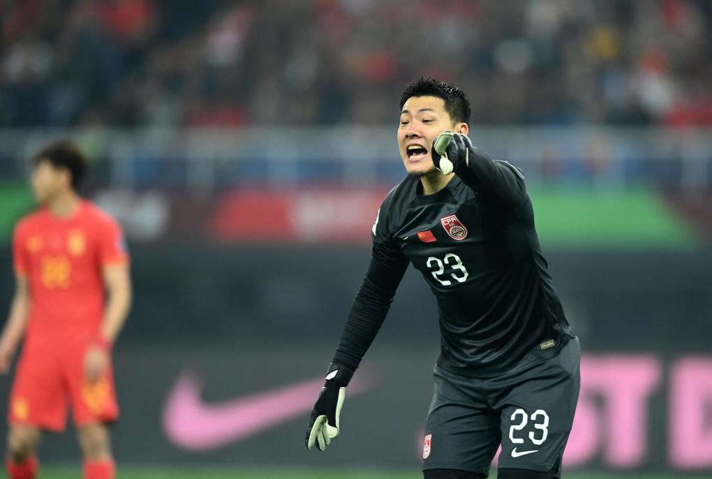3月26日,中国队守门员王大雷在比赛中。新华社记者 赵子硕 摄