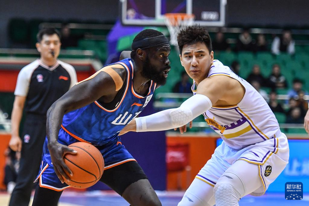 3月26日,山东高速队球员沙约克(左)在比赛中突破。新华社记者 朱峥 摄