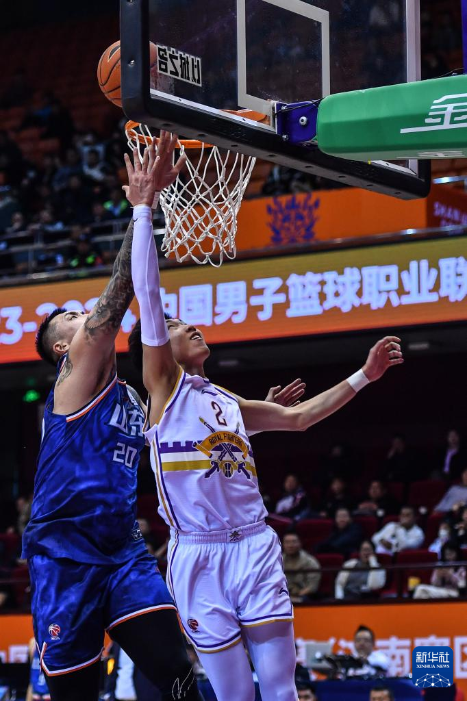 3月26日,山东高速队球员沙约克(左)在比赛中上篮。新华社记者 朱峥 摄