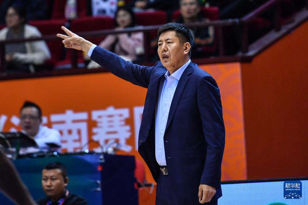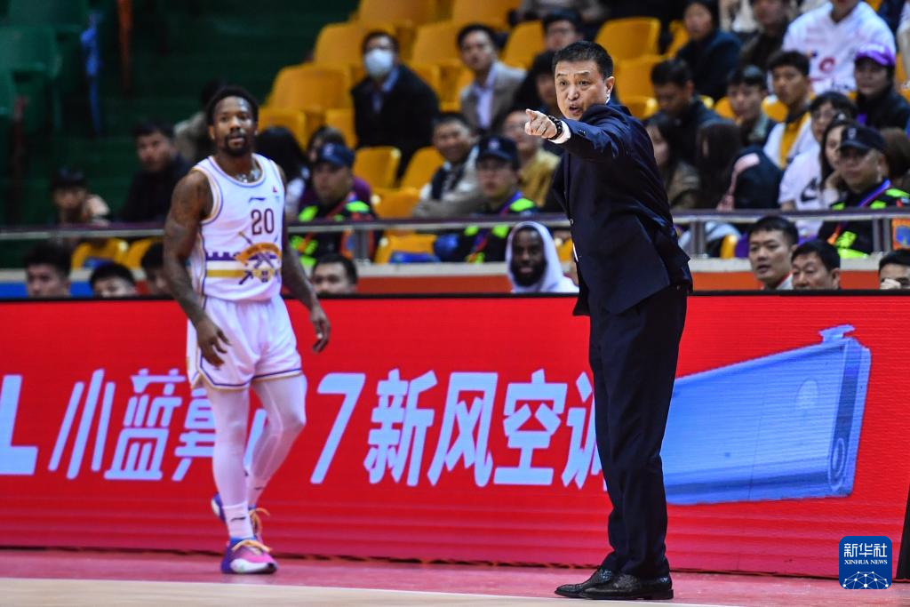 3月26日,山东高速队主教练丁伟在比赛中指挥。新华社记者 朱峥 摄