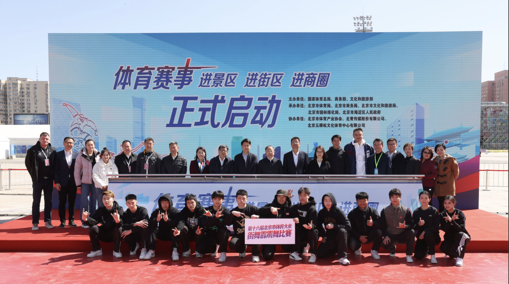 国家体育总局、商务部、文化和旅游部等相关负责人共同启动该活动,并为第十六届北京市体育大会街舞(霹雳舞)比赛揭幕。