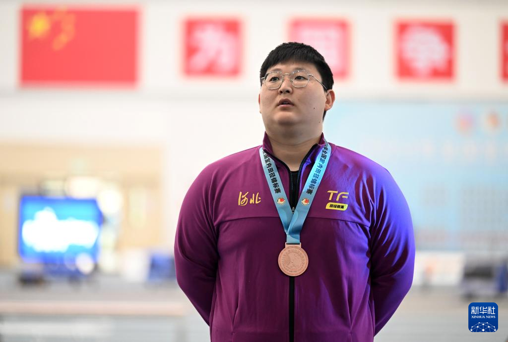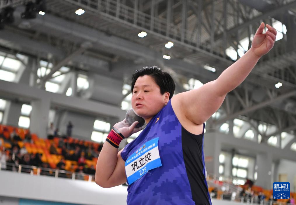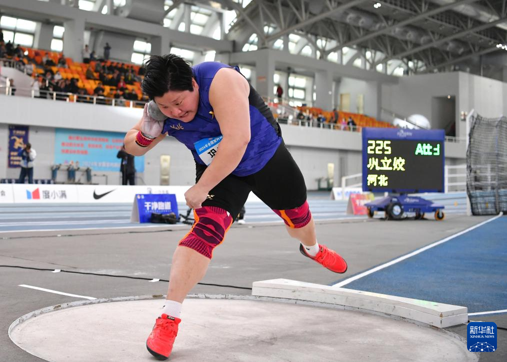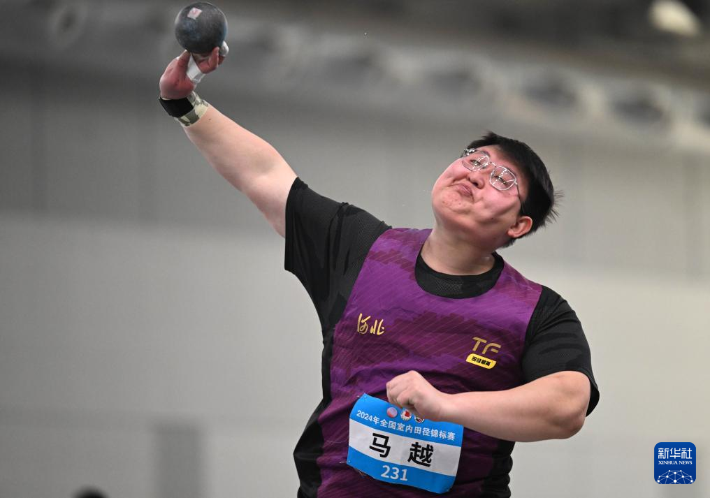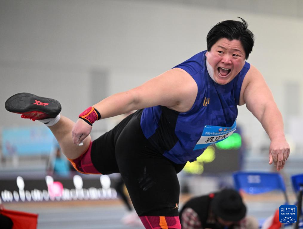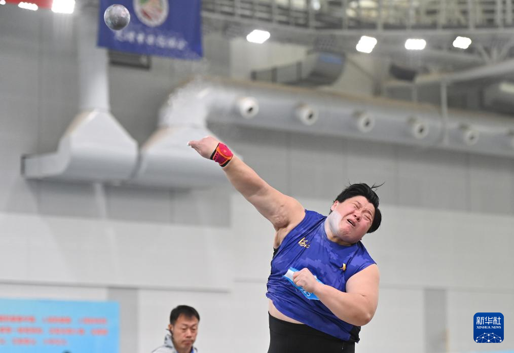 3月29日,河北队选手马越在女子铅球决赛中。她以17米49的成绩获得季军。新华社记者 宋彦桦 摄