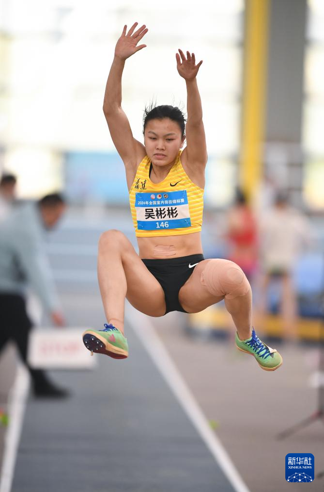 3月29日,福建队选手吴彬彬在女子跳远决赛中。她以6米30的成绩获得亚军。新华社记者 宋彦桦 摄