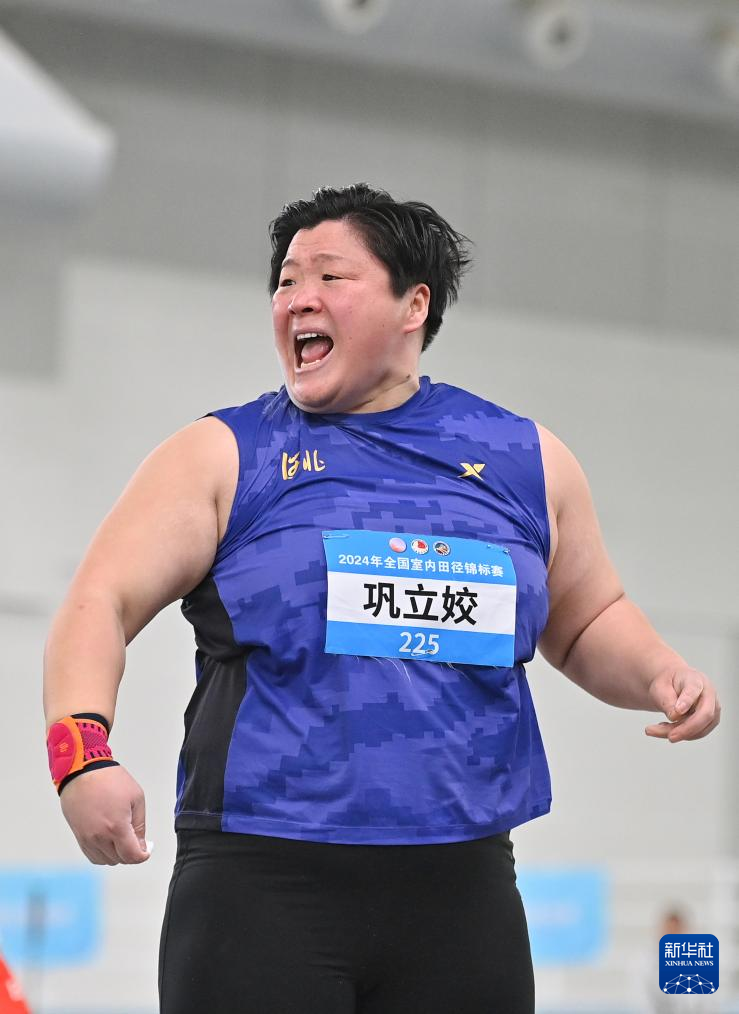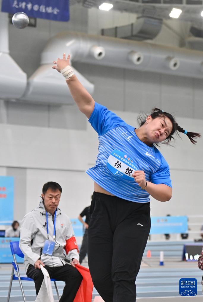 3月29日,山东队选手孙悦在女子铅球决赛中。她以17米87的成绩获得亚军。新华社记者 宋彦桦 摄