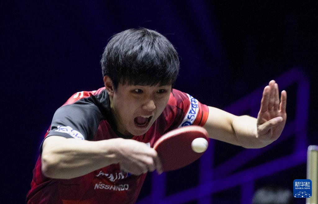 3月30日,张本智和在比赛中。新华社发(全休相摄)