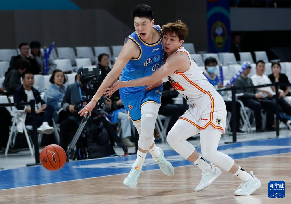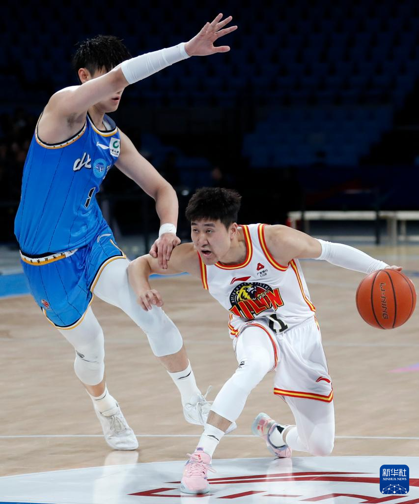 3月29日,吉林九台农商银行队球员姜伟泽(右)在比赛中突破。新华社记者 雒圆 摄