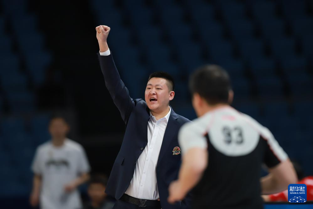 3月29日,吉林九台农商银行队主教练高俊超在场边指挥。新华社记者 雒圆 摄