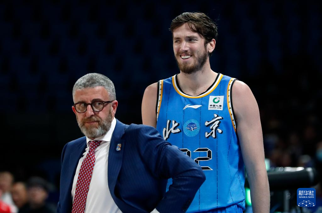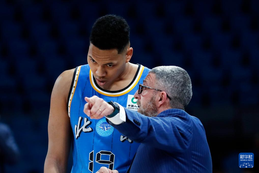 3月29日,北京北汽队主教练乔里欧·格里乔里(左)和球员利夫在比赛中。新华社记者 雒圆 摄