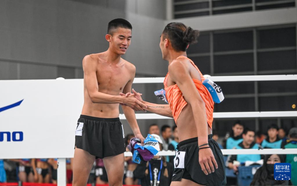 3月30日,冠军河北队选手闫熠铎(左)与亚军浙江队选手奚枭横在决赛后互相致意。新华社记者 孙凡越 摄