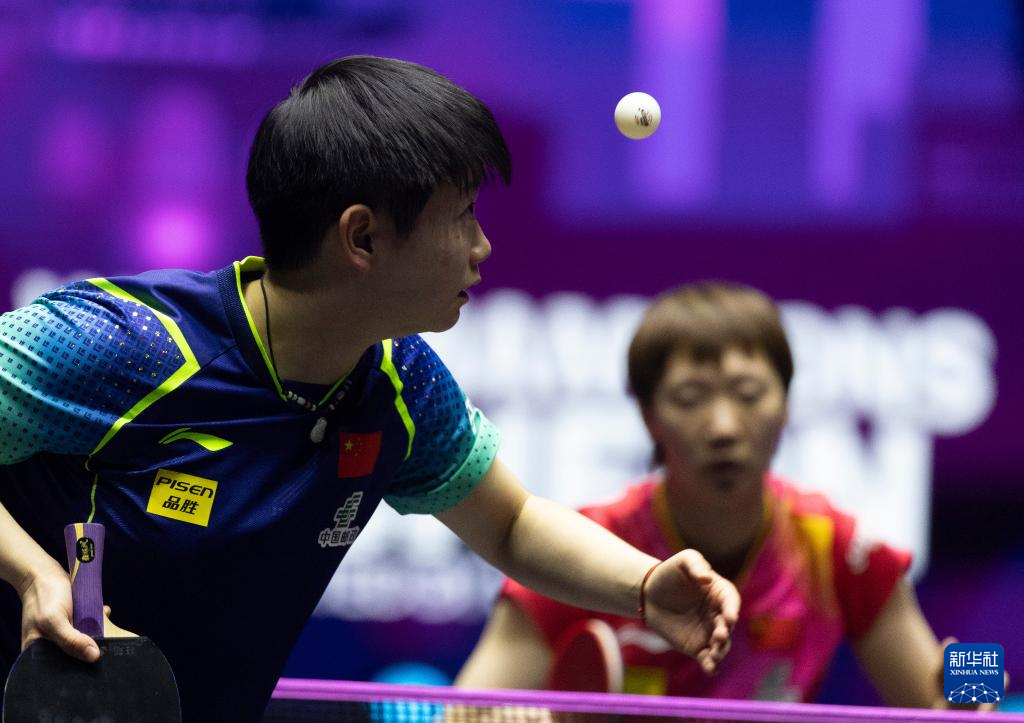 3月31日,孙颖莎在比赛中回球。新华社发(全休相摄)