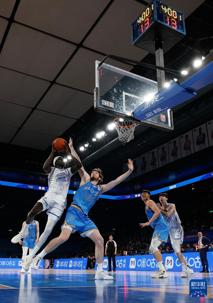 当日,在2023-2024赛季中国男子篮球职业联赛(CBA)常规赛第50轮比赛中,北京北汽队主场105比96战胜宁波町渥队。