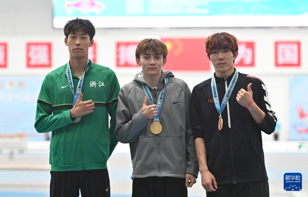 3月31日,冠军新疆队选手艾力西尔·吾买尔(中)、亚军浙江队选手丁文豪(左)、季军天津队选手鞠天淇在颁奖仪式上合影。新华社记者 宋彦桦 摄