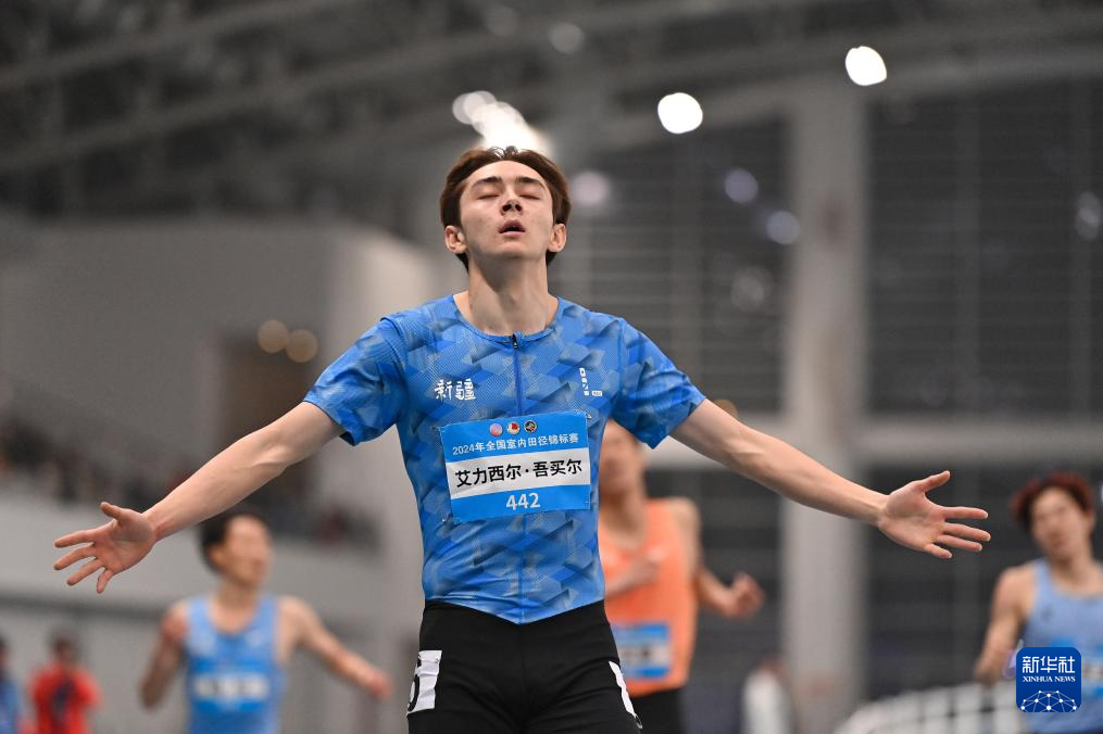 当日,2024年全国室内田径锦标赛男子400米决赛在天津举行。