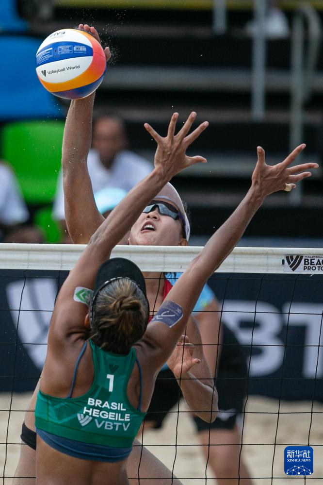 当日,在世界沙滩排球巡回赛巴西萨夸雷马站女子半决赛中,中国组合薛晨/夏欣怡2比0战胜巴西组合赫格勒/维托里亚。