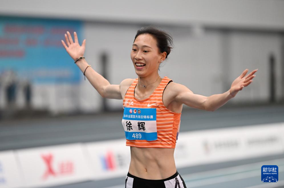 3月31日,浙江队选手徐辉在女子3000米比赛后庆祝。她以9分14秒06的成绩获得冠军。新华社记者 李然 摄