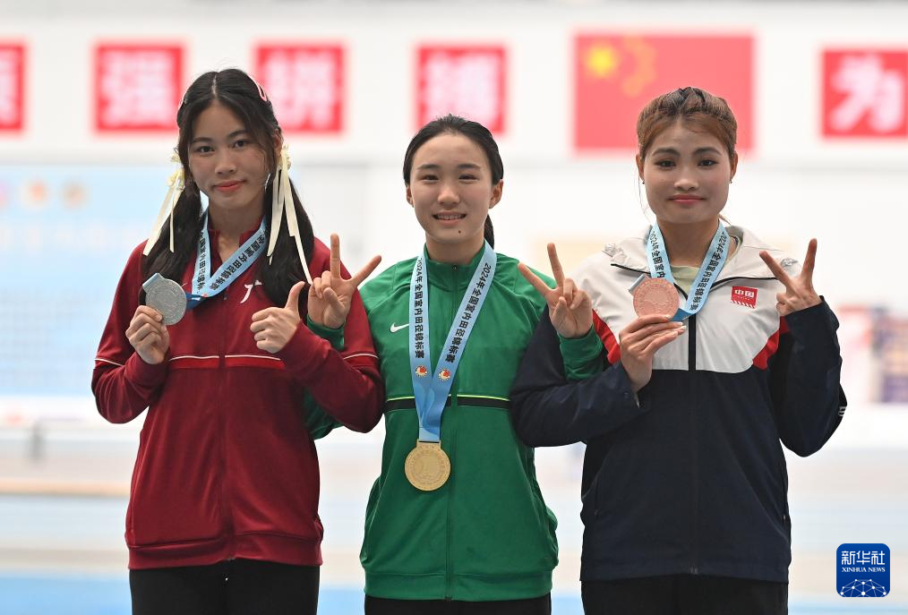 3月31日,冠军浙江队选手陈妤颉(中)、亚军广东队选手黄淑萍(左)和季军湖北队选手李贺在颁奖仪式上合影。新华社记者 宋彦桦 摄