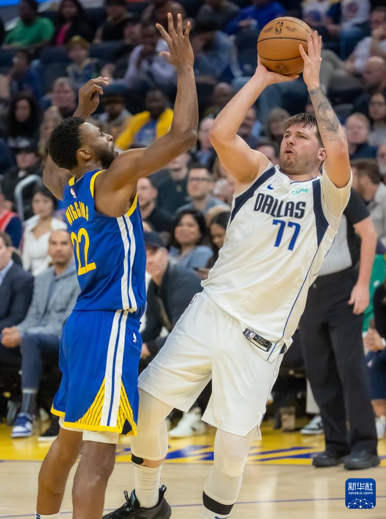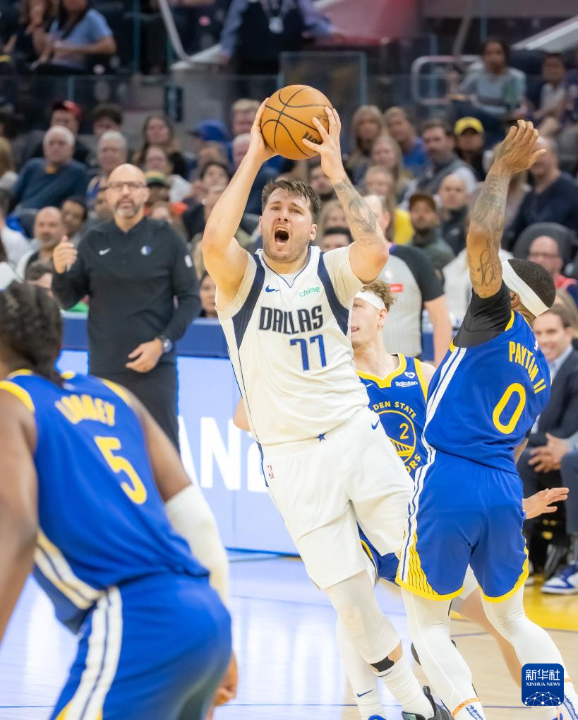 4月2日,独行侠队球员卢卡·东契奇(中)在比赛中投篮。新华社发(董旭东摄)