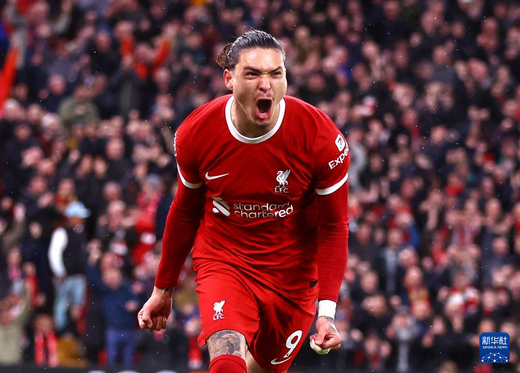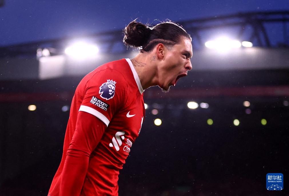 4月4日,利物浦队球员努涅斯庆祝进球。新华社/路透