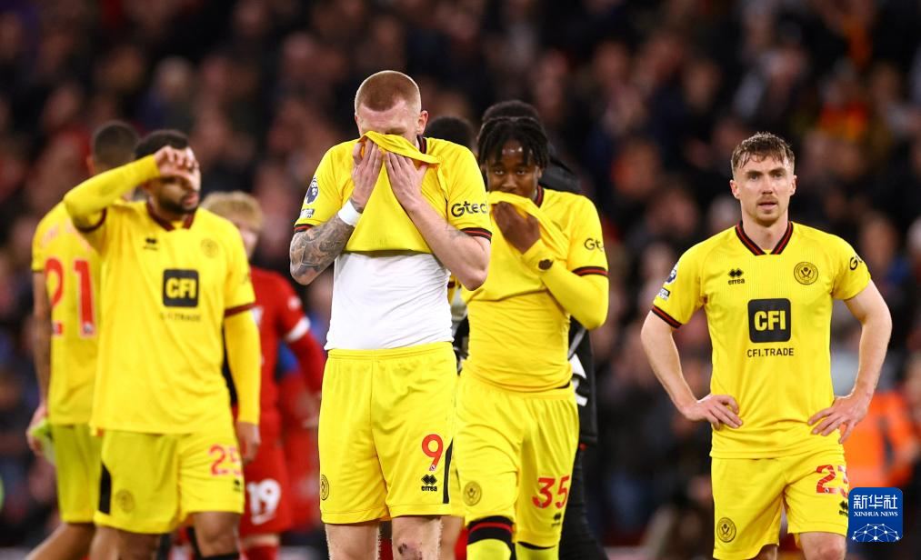 4月4日,谢菲尔德联队球员在比赛后。新华社/路透