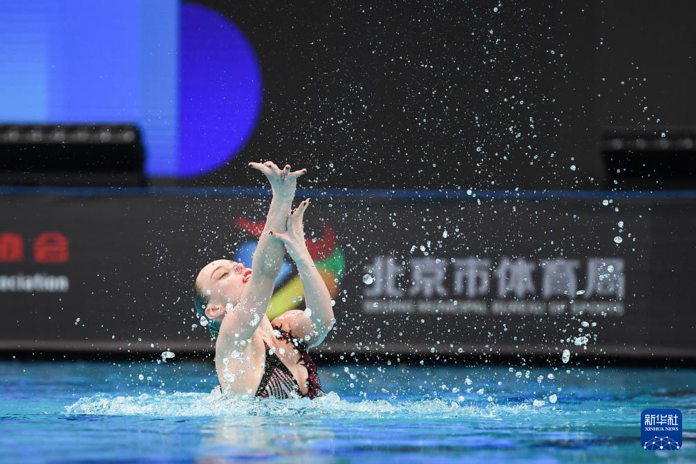 当日,2024年花样游泳世界杯(北京站)在国家游泳中心“水立方”开赛。