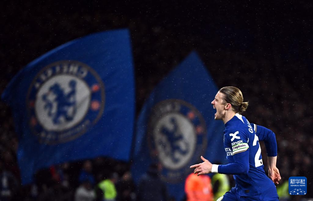 4月4日,切尔西队球员加拉格尔庆祝进球。新华社/路透