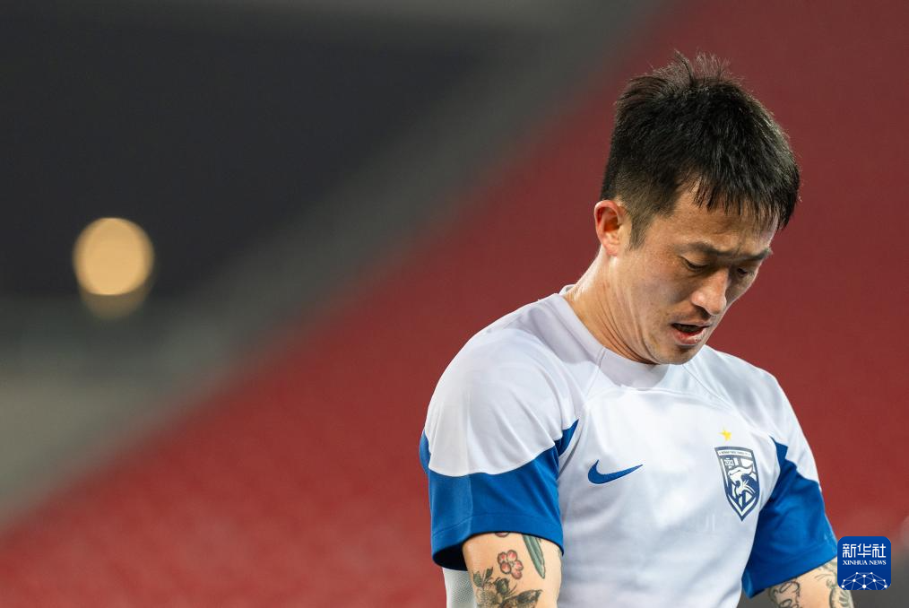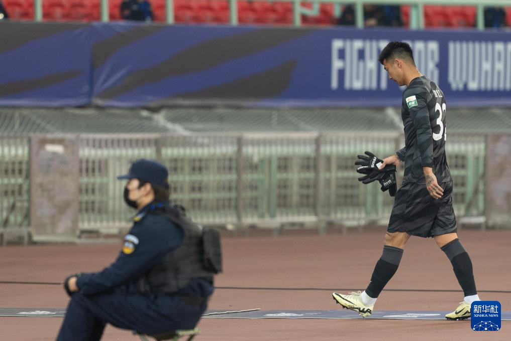 4月4日,武汉三镇队守门员刘殿座在比赛中被红牌罚下后离场。新华社记者 肖艺九 摄