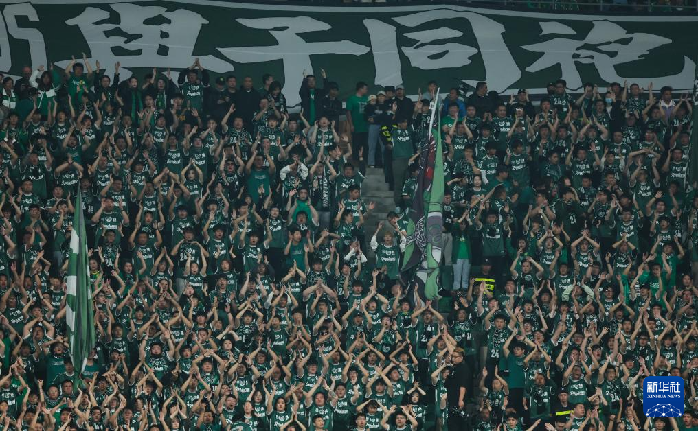 4月5日,北京国安队球迷在比赛中加油助威。新华社记者 王楷焱 摄