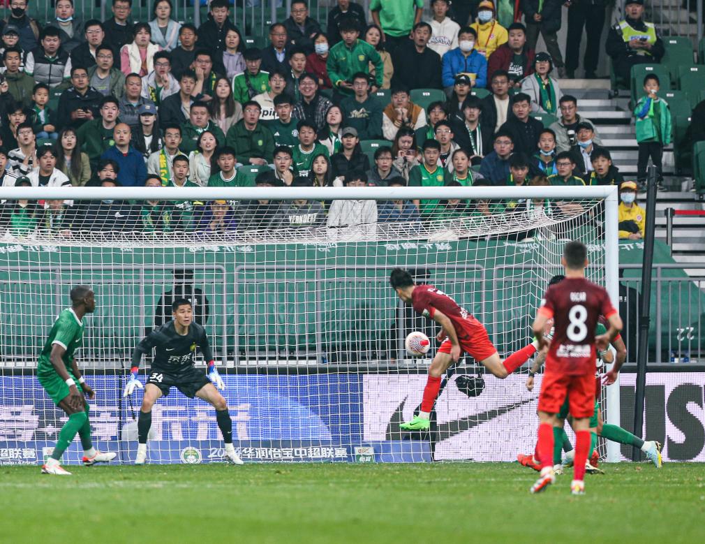 当天的焦点战是北京国安主场与上海海港的“强强对话”,比赛跌宕起伏。第10分钟,武磊凌空抽射破门,海港队打破僵局。古加在第27分钟远射进球,帮助国安队扳平比分。第82分钟,方昊在禁区内连续带球变向被张琳芃绊倒获得点球,张玉宁主罚命中,帮助国安队反超比分。补时阶段海港队频频传中,武磊在第96分钟头球破门,最终双方握手言和。