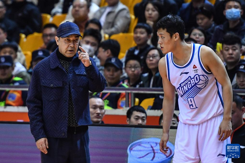4月6日,宁波町渥队主教练阿的江(左)在比赛中指导球员许裕茁。新华社记者 朱峥 摄