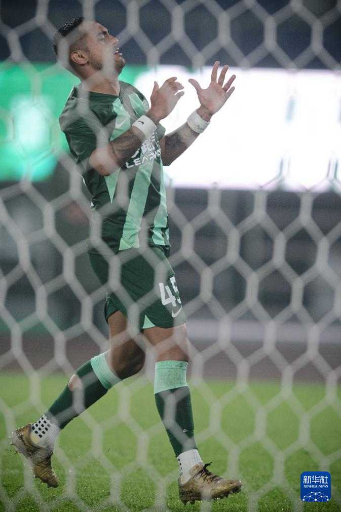 4月6日,浙江队球员莱昂纳多在比赛中错失进球机会后。新华社记者 江汉 摄