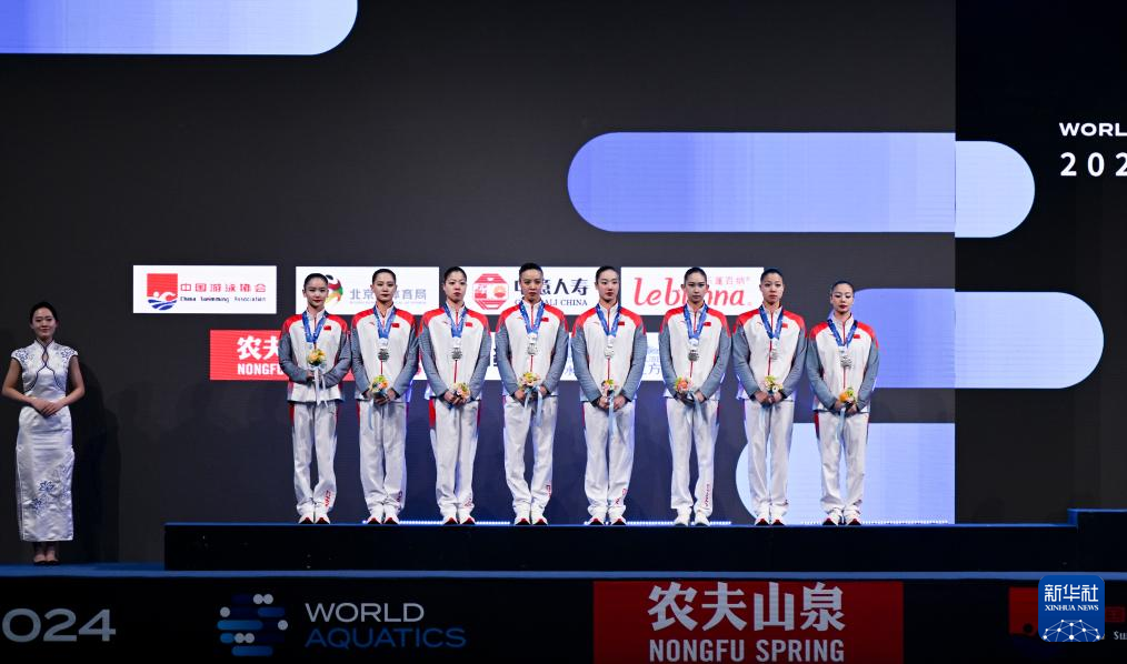 当日,在国家游泳中心“水立方”举行的2024年花样游泳世界杯(北京站)集体技巧自选比赛中,中国队以205.0300分的成绩获得亚军。