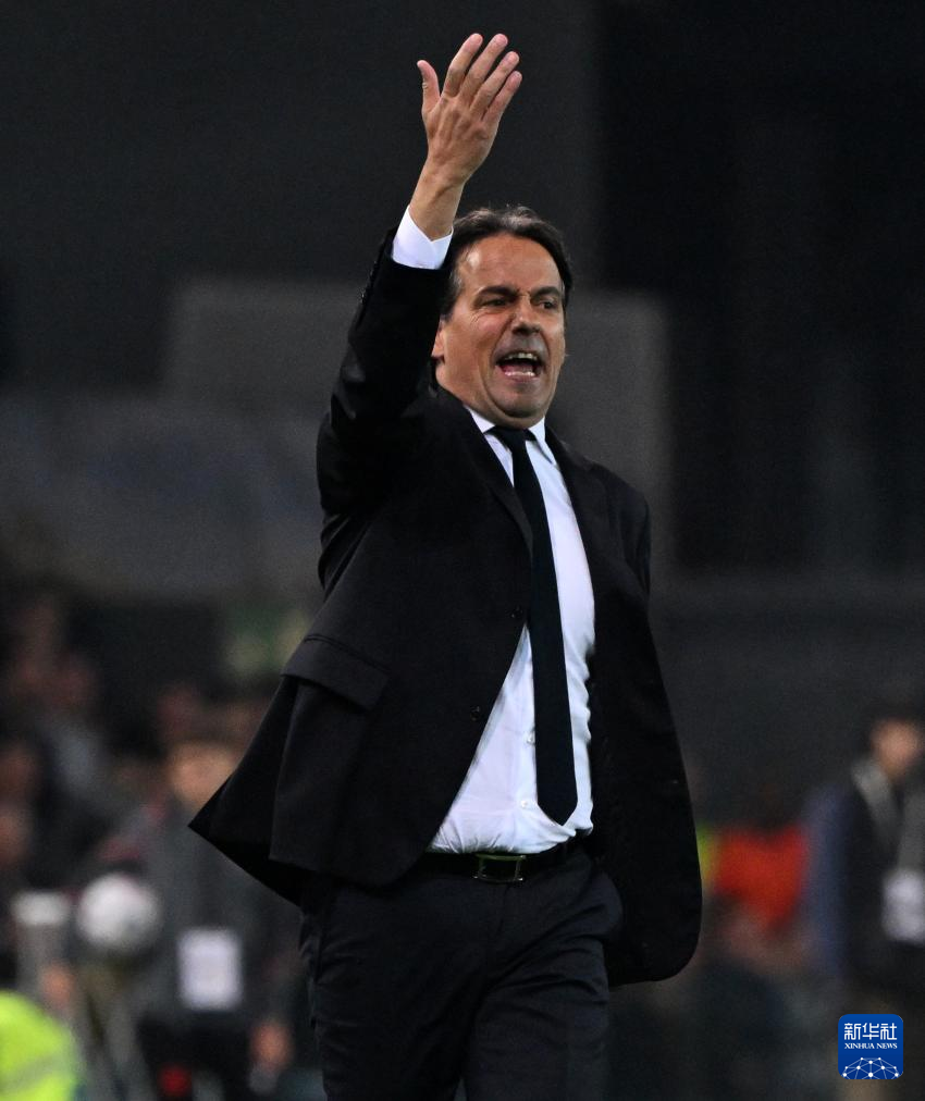 4月8日,国际米兰队主教练因扎吉在比赛中。新华社发(迭戈摄)