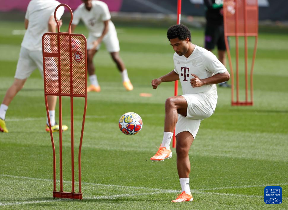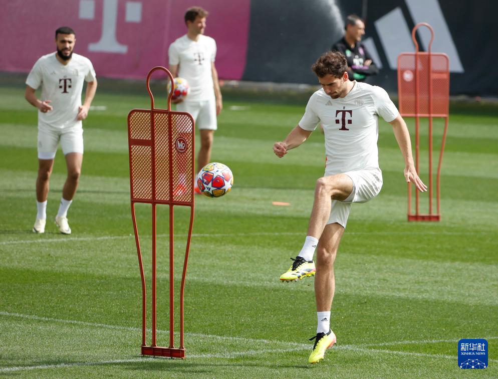 4月8日,拜仁慕尼黑队球员格雷茨卡(前)在训练中。新华社发(菲利普·鲁伊兹摄)