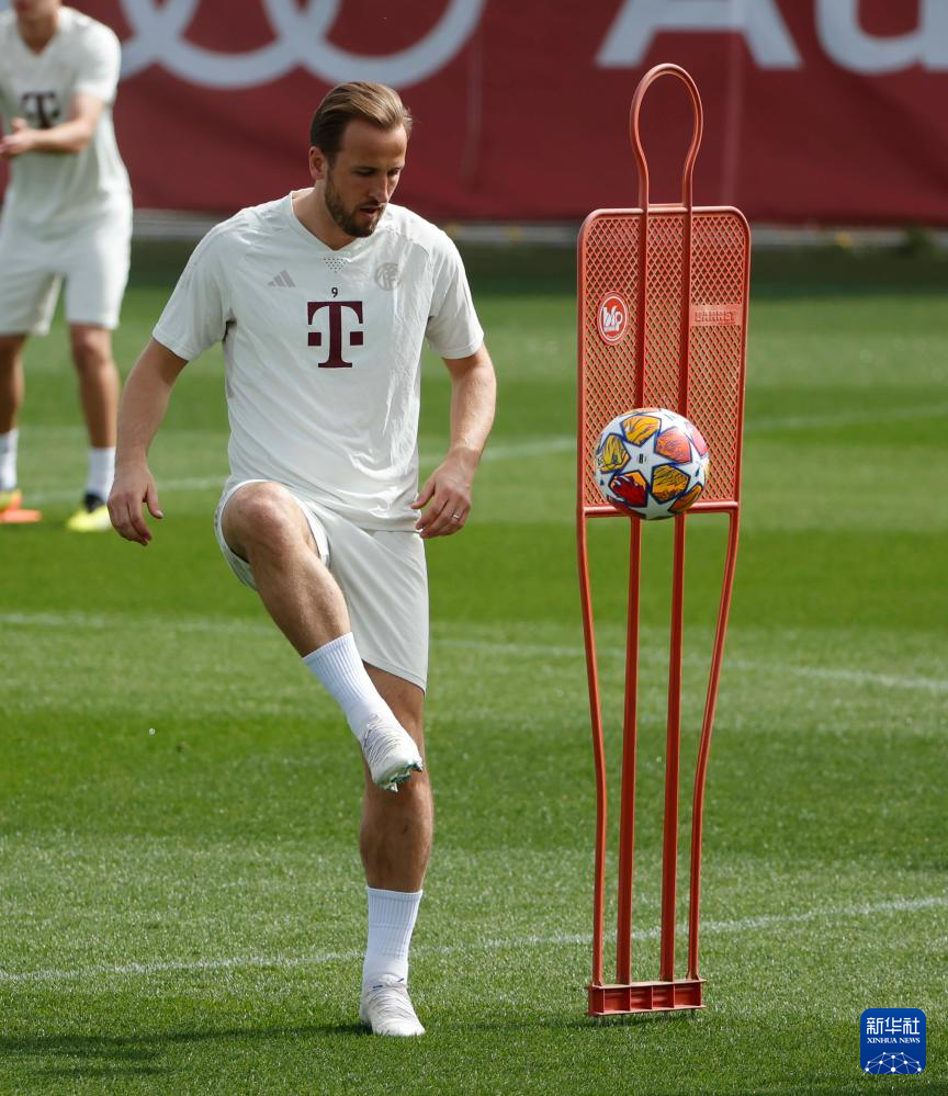 4月8日,拜仁慕尼黑队球员凯恩在训练中。新华社发(菲利普·鲁伊兹摄)