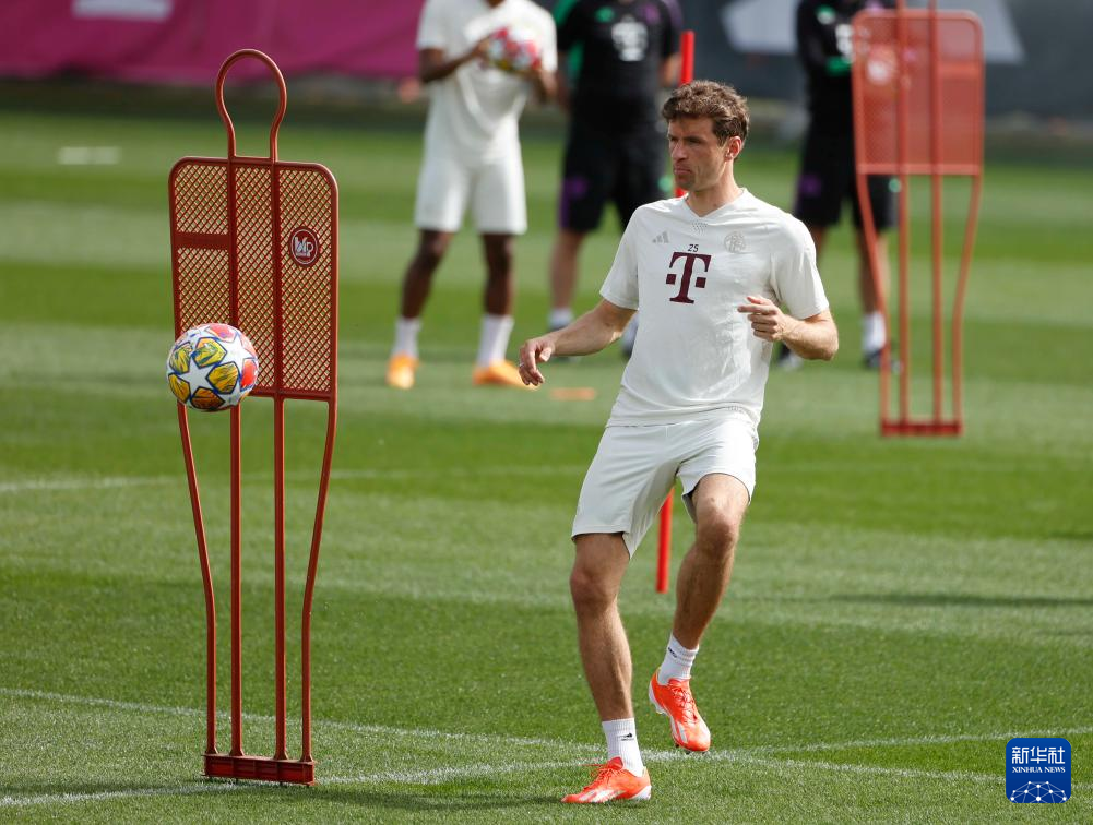 4月8日,拜仁慕尼黑队球员穆勒在训练中。新华社发(菲利普·鲁伊兹摄)