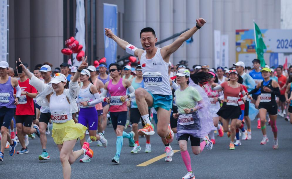 2024年3月31日,2024杭州梦想小镇半程马拉松在浙江杭州未来科技城学术交流中心鸣枪起跑。新华社记者 徐昱 摄