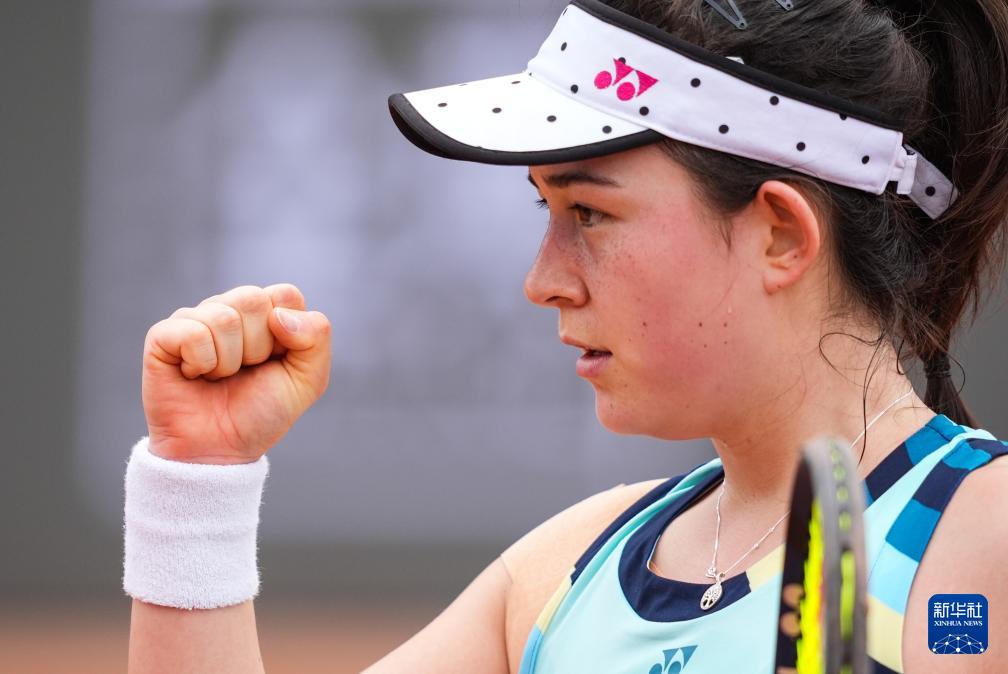 4月9日,中国队选手郑钦文在单打比赛中庆祝。她2比0战胜中国台北队选手杨亚依。新华社记者 薛宇舸 摄