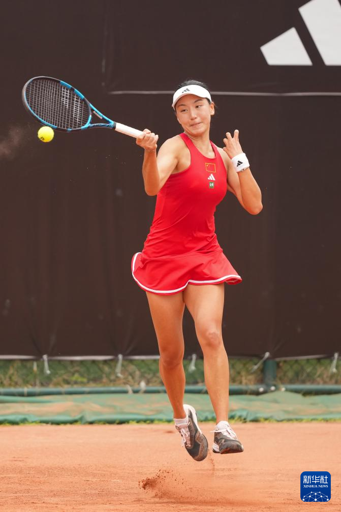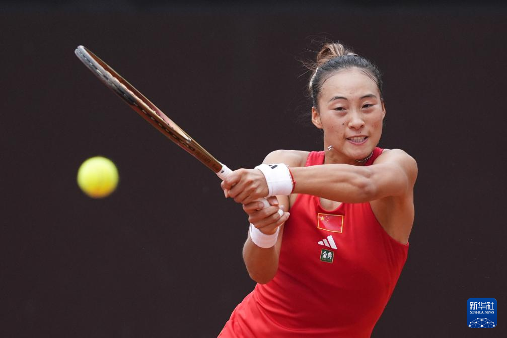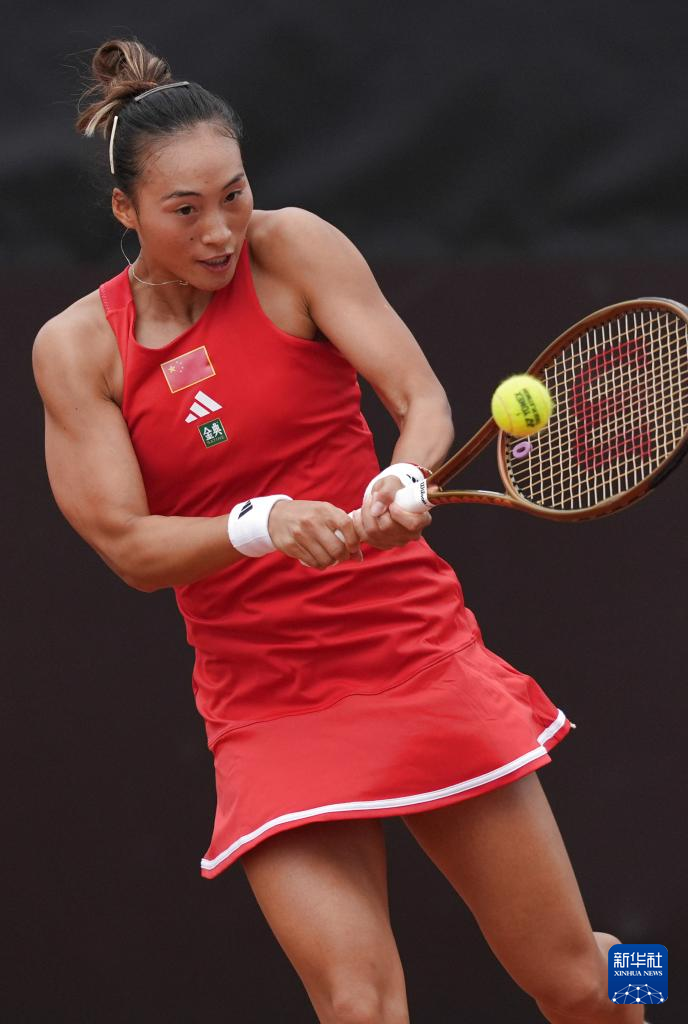 4月9日,中国队选手郑钦文在单打比赛中回球。她2比0战胜中国台北队选手杨亚依。新华社记者 薛宇舸 摄